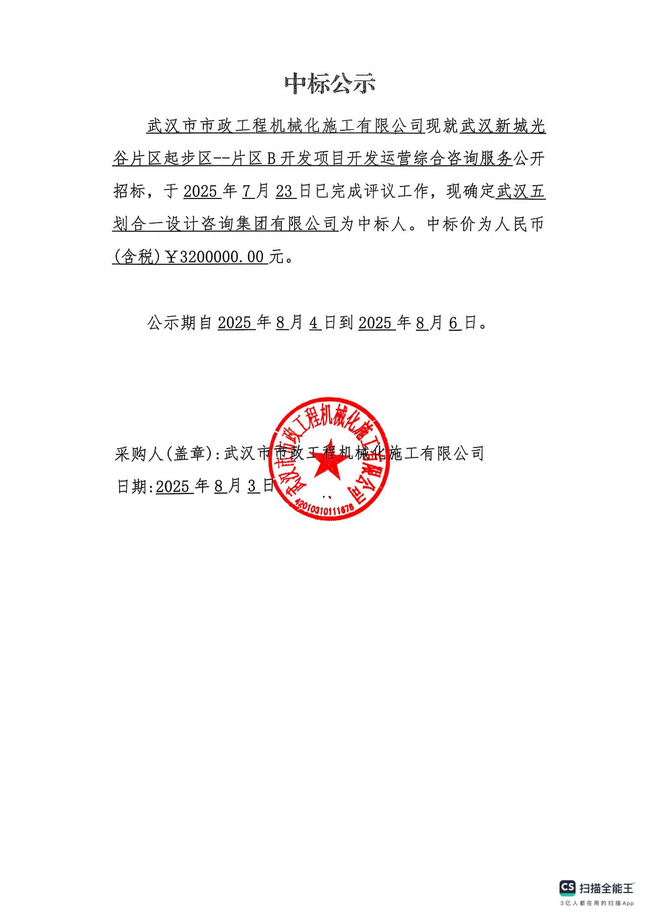 武漢新城光谷片區(qū)起步區(qū)--片區(qū)B開發(fā)項(xiàng)目開發(fā)運(yùn)營綜合咨詢服務(wù)中標(biāo)公示