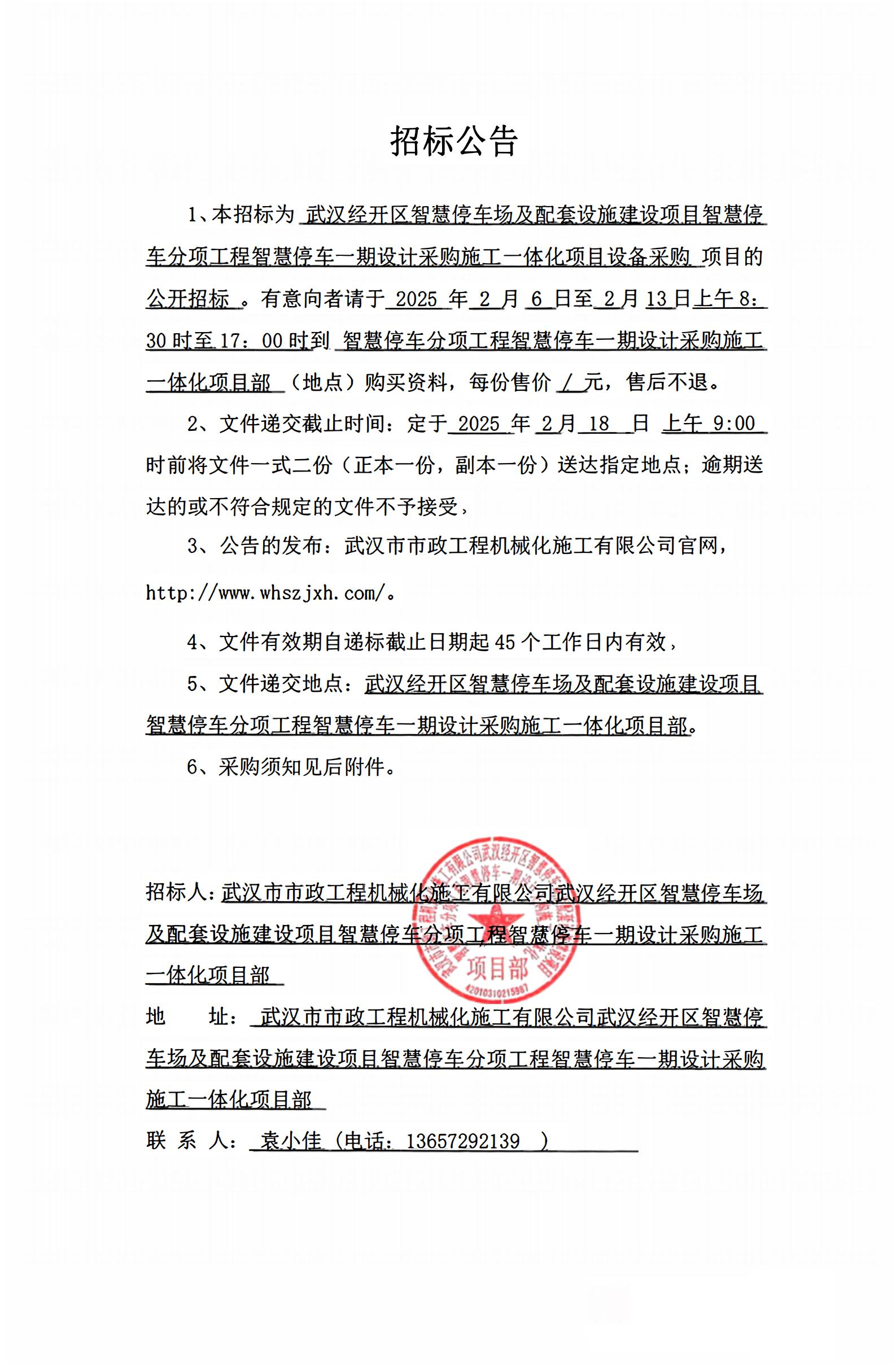 武漢經(jīng)開區(qū)智慧停車場及配套設(shè)施建設(shè)項(xiàng)目智慧停車分項(xiàng)工程智慧停車一期設(shè)計(jì)采購施工一體化項(xiàng)目 設(shè)備采購招標(biāo)公告
