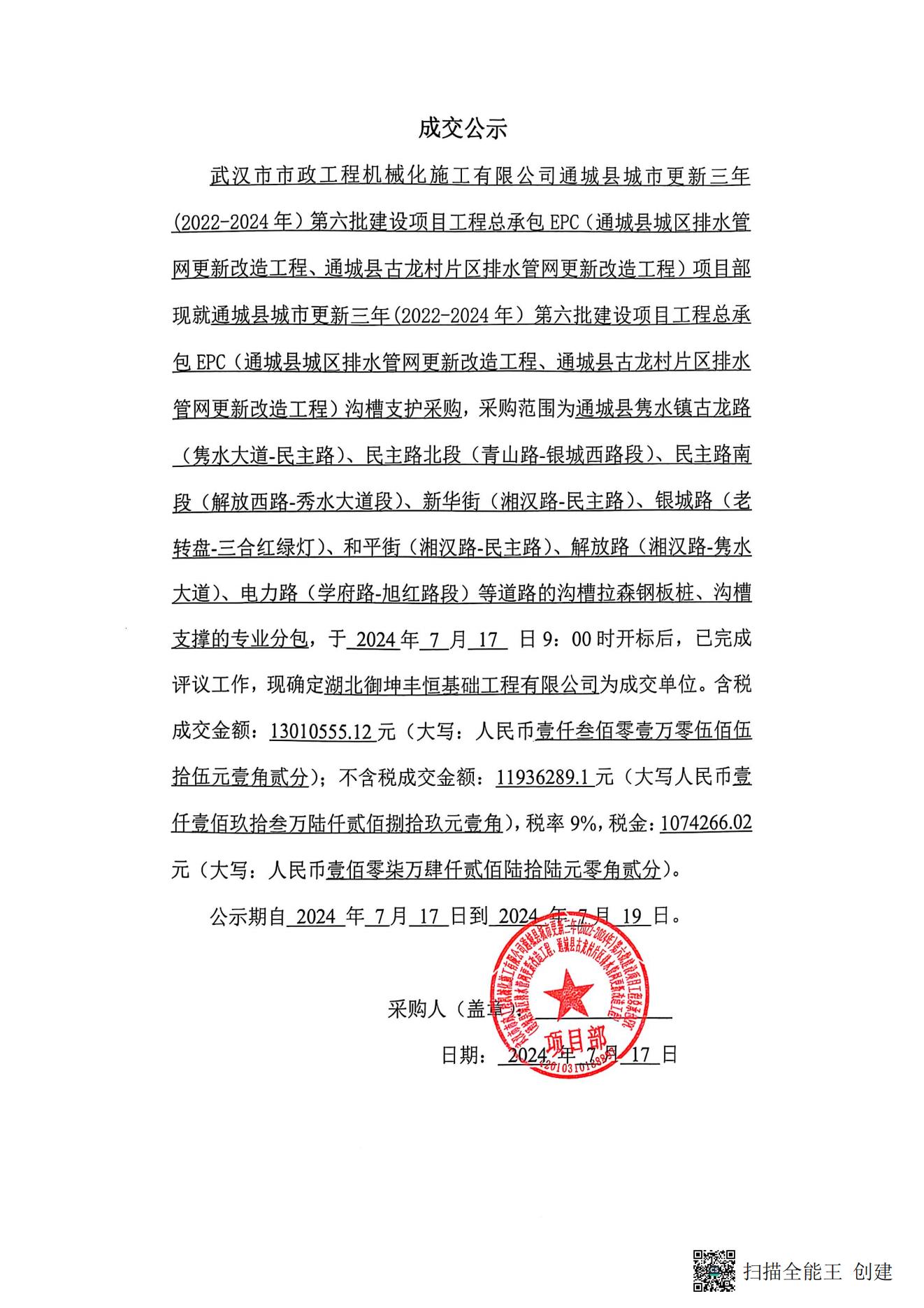 通城縣城市更新三年(2022-2024年)第六批建設(shè)項(xiàng)目工程總承包EPC(通城縣城區(qū)排水管網(wǎng)更新改造工程、通城縣古龍村片區(qū)排水管網(wǎng)更新改造工程)工程溝槽支護(hù)工程成交公示