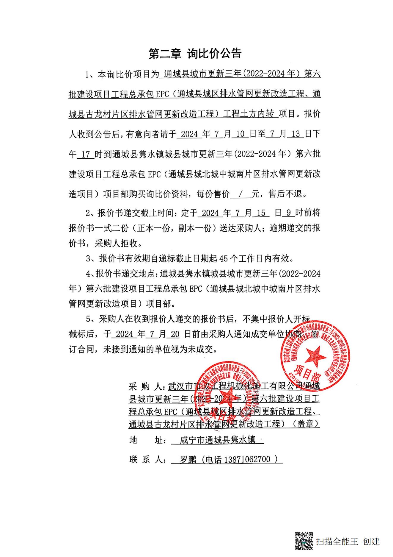 通城縣城市更新三年(2022-2024年)第六批建設(shè)項(xiàng)目工程總承包EPC(通城縣城北城中城南片區(qū)排水管網(wǎng)更新改造項(xiàng)目)土方內(nèi)轉(zhuǎn)工程詢價(jià)公告
