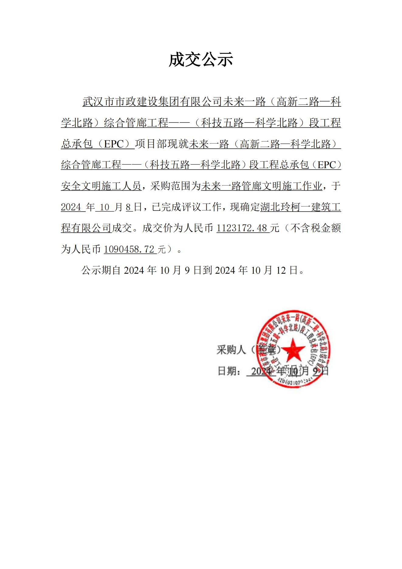 未來(lái)一路(高新二路—科學(xué)北路)綜合管廊工程——(科技五路—科學(xué)北路)段工程總承包(EPC)安全文明施工人員成交公示